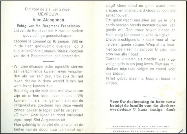 De namen zijn vermeld zoals op het prentje/brief of verbeterd en behoren tot de stam