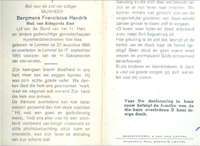 De namen zijn vermeld zoals op het prentje/brief of verbeterd en behoren tot de stam